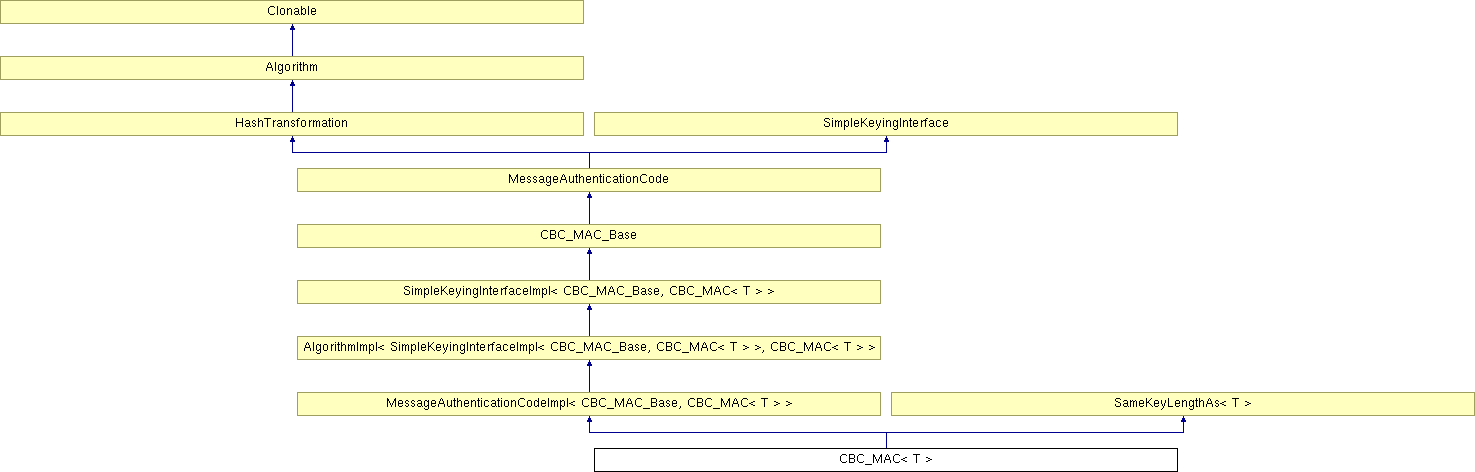 Inheritance diagram for CBC_MAC< T >:
