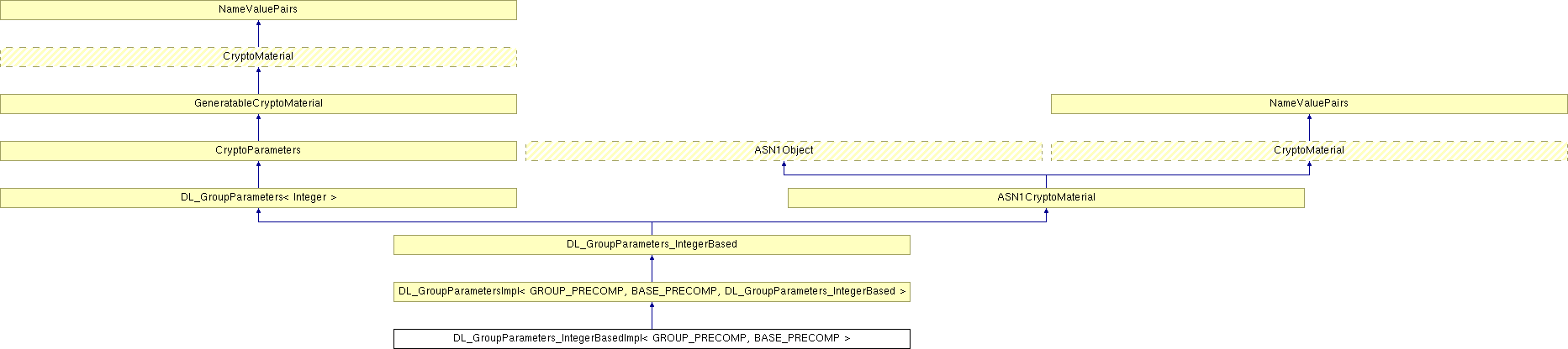 Inheritance diagram for DL_GroupParameters_IntegerBasedImpl< GROUP_PRECOMP, BASE_PRECOMP >: