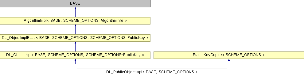 Inheritance diagram for DL_PublicObjectImpl< BASE, SCHEME_OPTIONS >: