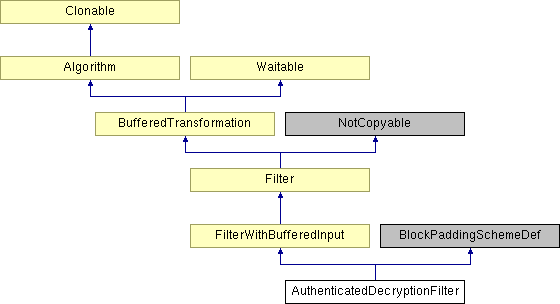 | AuthenticatedDecryptionFilter (AuthenticatedSymmetricCipher &c, BufferedTransformation *attachment=NULL, word32 flags=DEFAULT_FLAGS, int truncatedDigestSize=-1, BlockPaddingScheme padding=DEFAULT_PADDING) | |