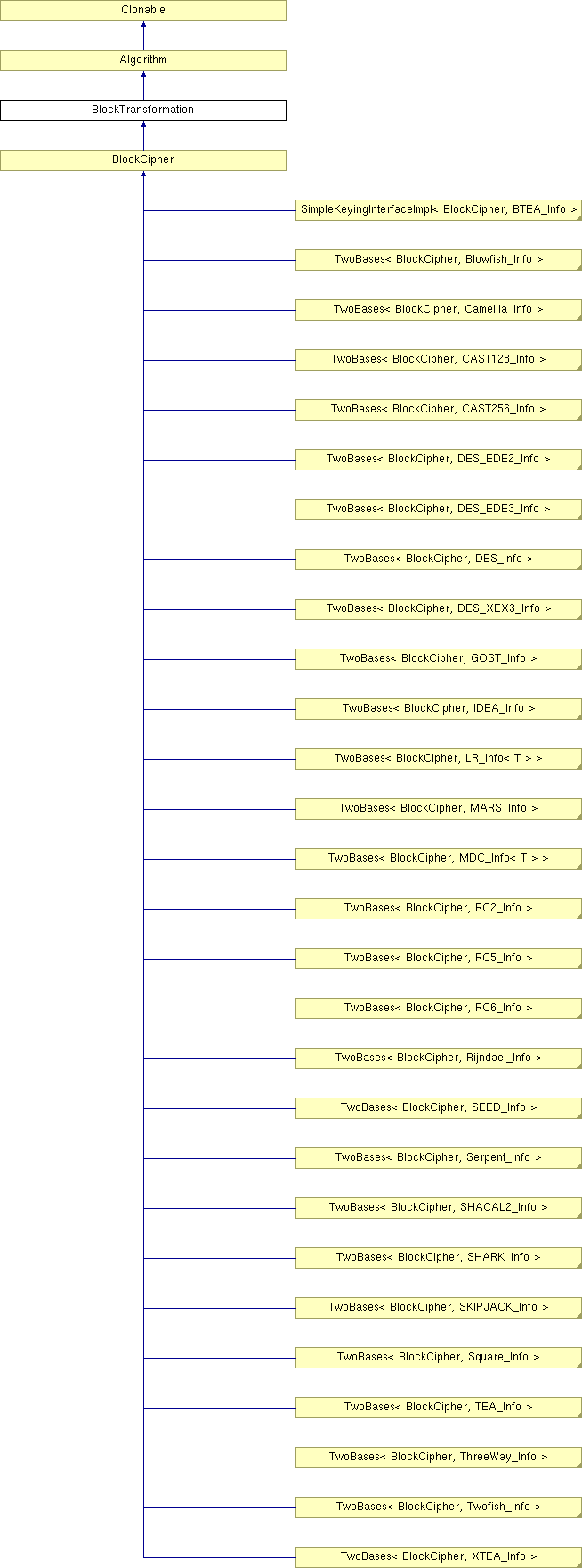 Classes derived from BlockTransformation are block ciphers in ECB mode (for example the DES::Encryption class), which are stateless. These classes should not be used directly, but only in combination with a mode class (see CipherModeDocumentation in modes.h).