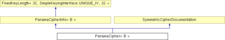 typedef SymmetricCipherFinal < ConcretePolicyHolder < PanamaCipherPolicy< B > , AdditiveCipherTemplate <> >, PanamaCipherInfo< B > > | Encryption |
