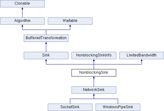 Sink NonblockingSinkInfo LimitedBandwidth BufferedTransformation Algorithm Waitable Clonable NetworkSink SocketSink WindowsPipeSink