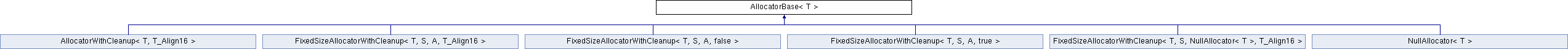 Inheritance diagram for AllocatorBase< T >:Public Member Functions | |