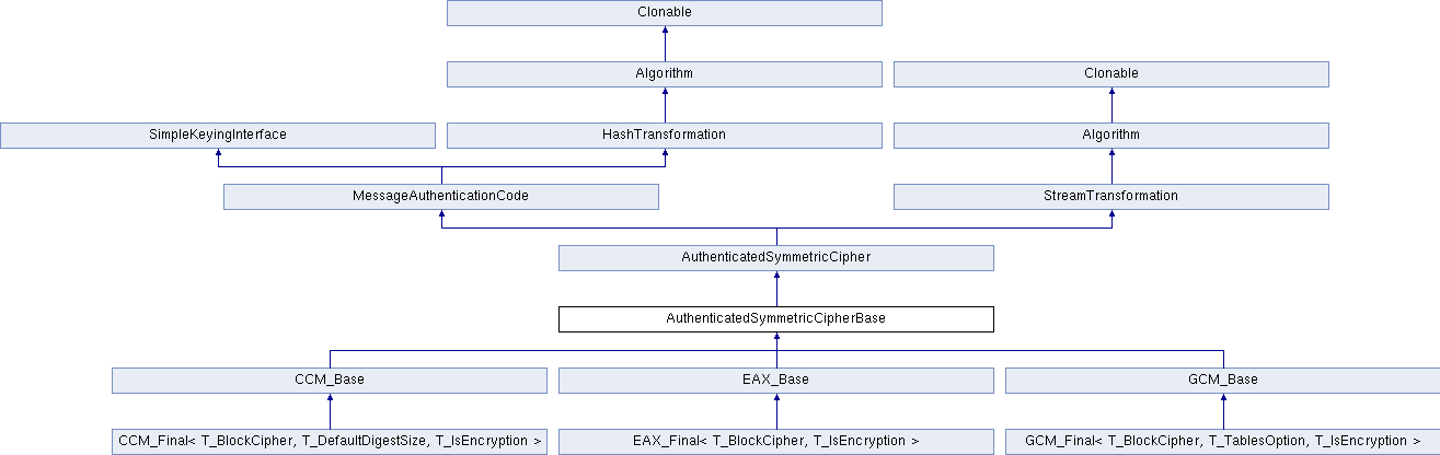 Inheritance diagram for AuthenticatedSymmetricCipherBase:Public Member Functions | |