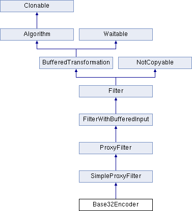 Inheritance diagram for Base32Encoder:Public Member Functions | |