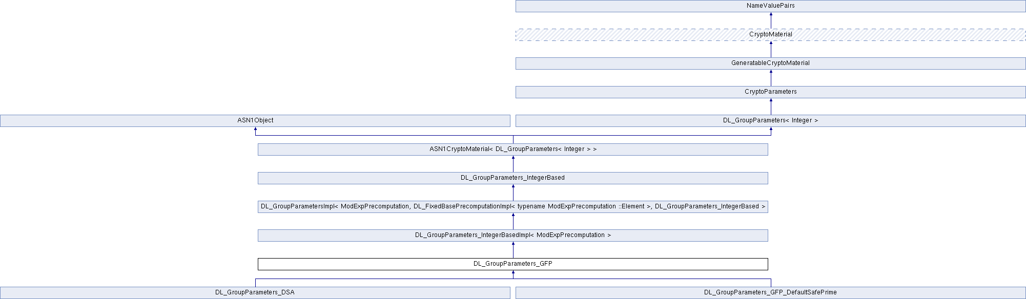 Public Member Functions inherited from ASN1CryptoMaterial< DL_GroupParameters< Integer > > | |