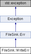 Inheritance diagram for FileSink::WriteErr:Additional Inherited Members | |