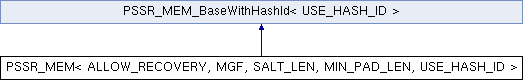 Inheritance diagram for PSSR_MEM< ALLOW_RECOVERY, MGF, SALT_LEN, MIN_PAD_LEN, USE_HASH_ID >:Static Public Member Functions | |