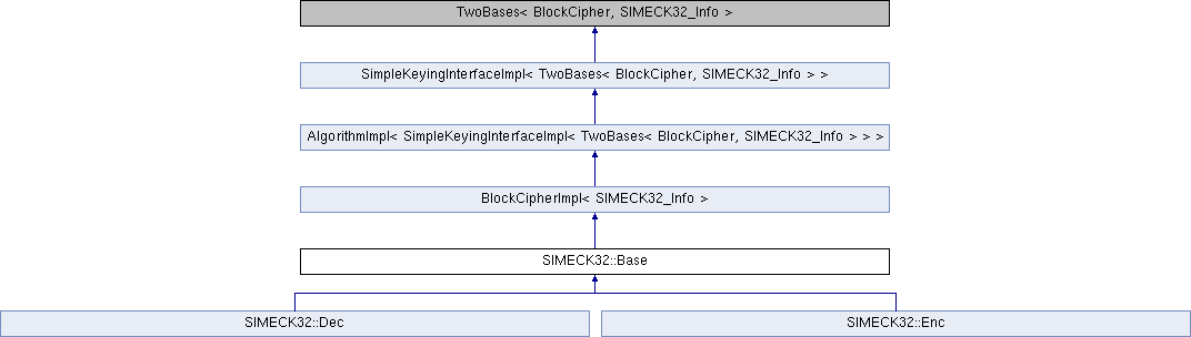 Inheritance diagram for SIMECK32::Base:Additional Inherited Members | |
