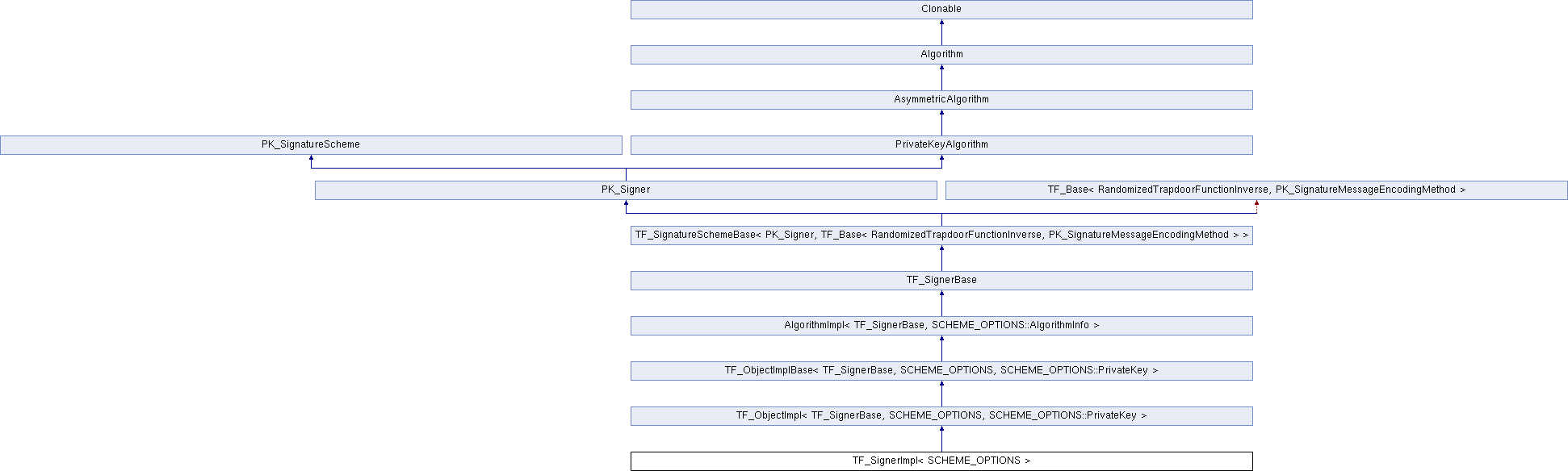 Inheritance diagram for TF_SignerImpl< SCHEME_OPTIONS >:Additional Inherited Members | |