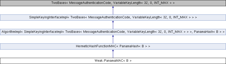 Inheritance diagram for Weak::PanamaMAC< B >:Public Member Functions | |