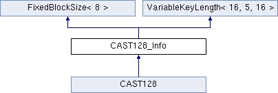 Inheritance diagram for CAST128_Info:Static Public Member Functions | |