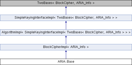 Public Member Functions inherited from BlockCipherImpl< ARIA_Info > | |