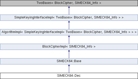Inheritance diagram for SIMECK64::Dec:Public Member Functions | |