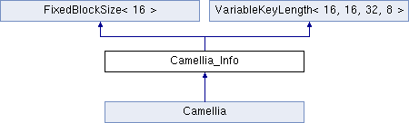 Inheritance diagram for Camellia_Info:Static Public Member Functions | |