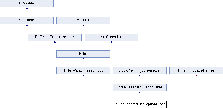 Inheritance diagram for AuthenticatedEncryptionFilter:Public Member Functions | |