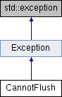 Inheritance diagram for CannotFlush:Public Member Functions | |