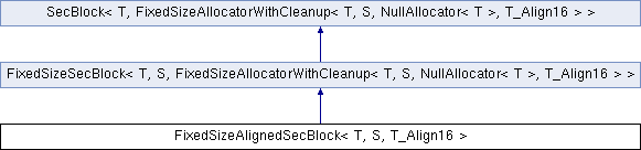 Inheritance diagram for FixedSizeAlignedSecBlock< T, S, T_Align16 >:Additional Inherited Members | |