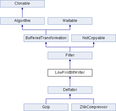 Inheritance diagram for LowFirstBitWriter:Public Member Functions | |