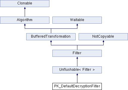 Inheritance diagram for PK_DefaultDecryptionFilter:Public Member Functions | |