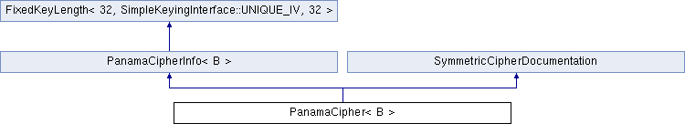 Inheritance diagram for PanamaCipher< B >:Public Types | |