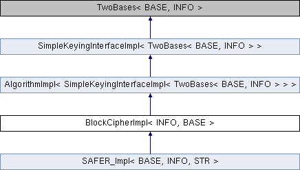 Inheritance diagram for BlockCipherImpl< INFO, BASE >:Public Member Functions | |