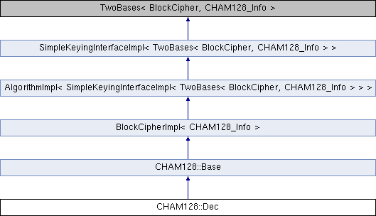 Inheritance diagram for CHAM128::Dec:Public Member Functions | |