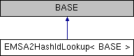 Inheritance diagram for EMSA2HashIdLookup< BASE >:Classes | |