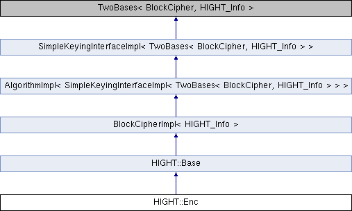 Inheritance diagram for HIGHT::Enc:Public Member Functions | |