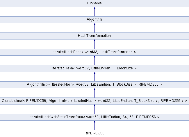 Inheritance diagram for RIPEMD256:Static Public Member Functions | |