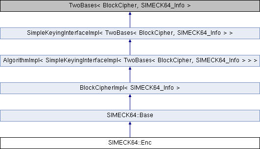 Inheritance diagram for SIMECK64::Enc:Public Member Functions | |