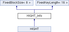 Inheritance diagram for HIGHT_Info:Static Public Member Functions | |