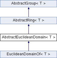 Inheritance diagram for AbstractEuclideanDomain< T >:Public Types | |