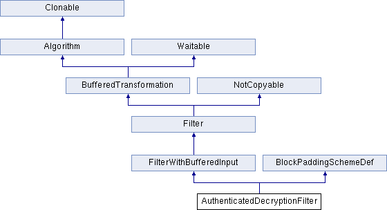 Inheritance diagram for AuthenticatedDecryptionFilter:Public Types | |