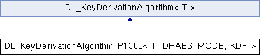Inheritance diagram for DL_KeyDerivationAlgorithm_P1363< T, DHAES_MODE, KDF >:Public Member Functions | |