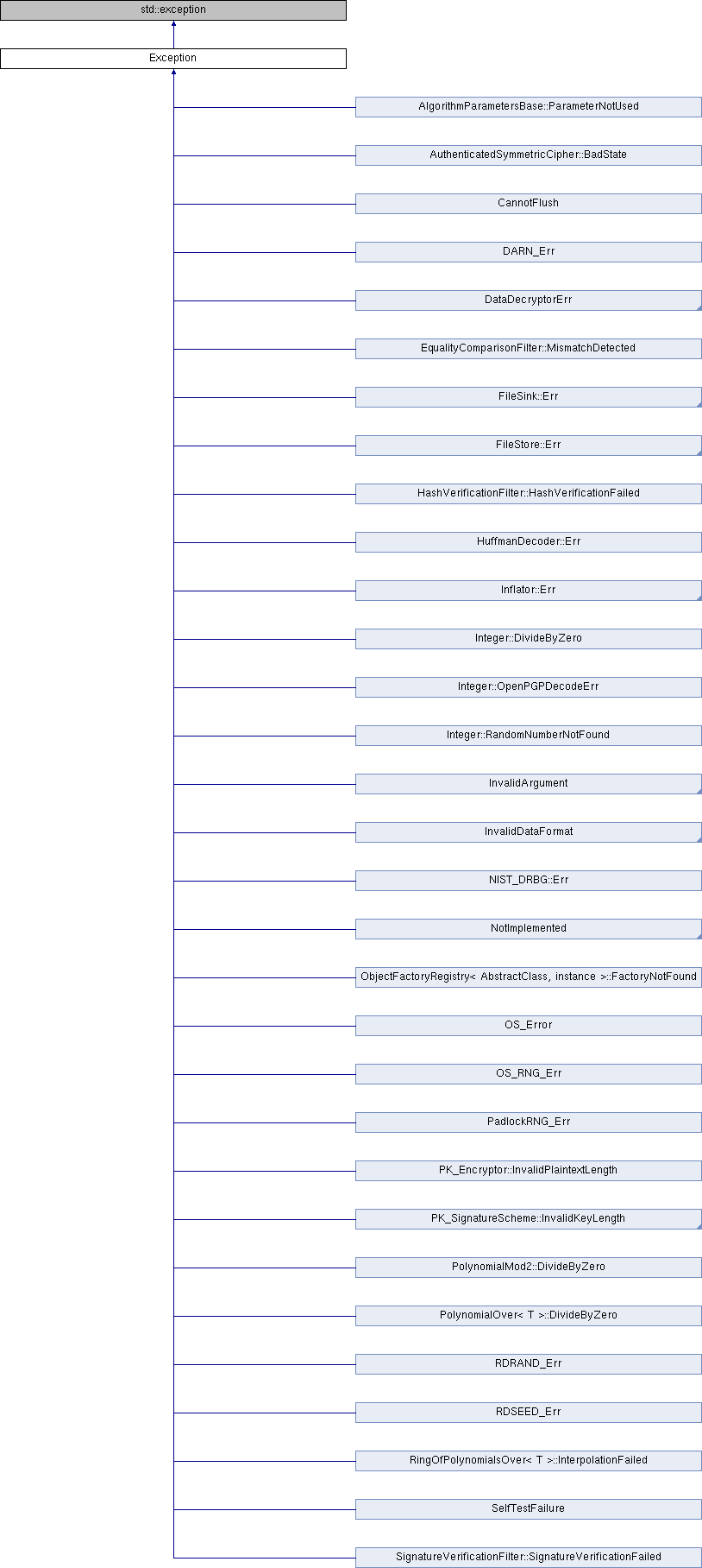 Inheritance diagram for Exception:Public Types | |
