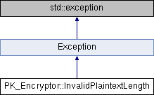 Inheritance diagram for PK_Encryptor::InvalidPlaintextLength:Additional Inherited Members | |