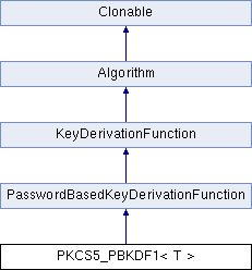 Inheritance diagram for PKCS5_PBKDF1< T >:Public Member Functions | |
