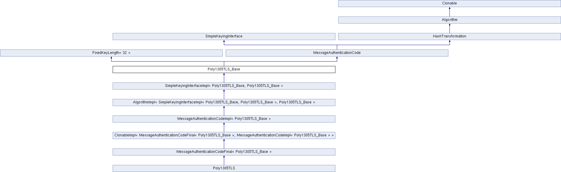 Inheritance diagram for Poly1305TLS_Base:Public Member Functions | |