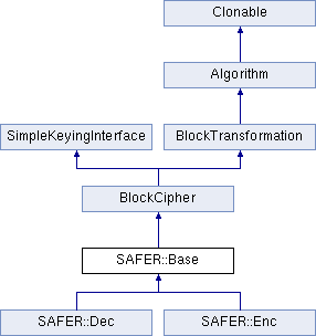 Inheritance diagram for SAFER::Base:Public Member Functions | |