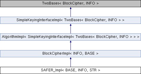 Inheritance diagram for SAFER_Impl< BASE, INFO, STR >:Additional Inherited Members | |