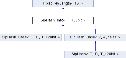 Inheritance diagram for SipHash_Info< T_128bit >:Static Public Member Functions | |