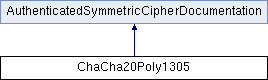 Inheritance diagram for ChaCha20Poly1305:Public Types | |