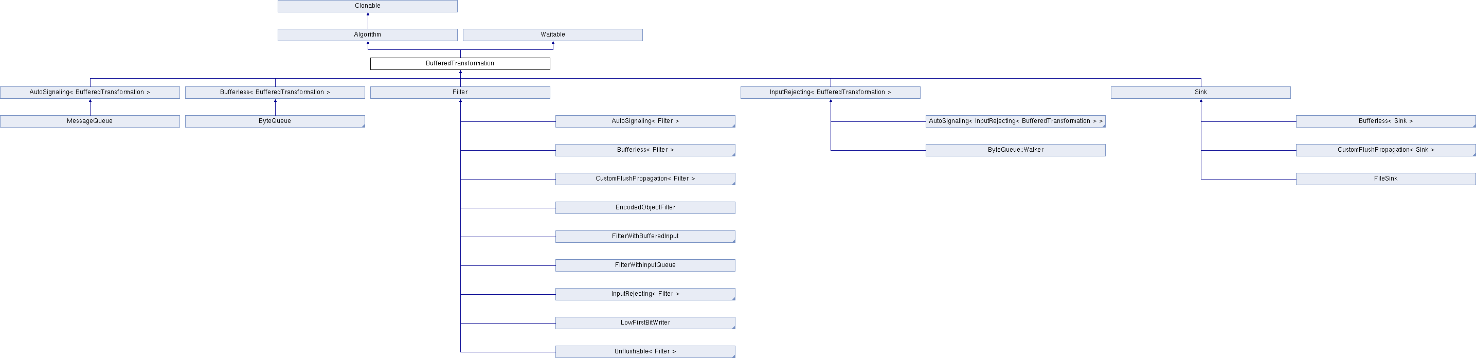 Inheritance diagram for BufferedTransformation:Classes | |