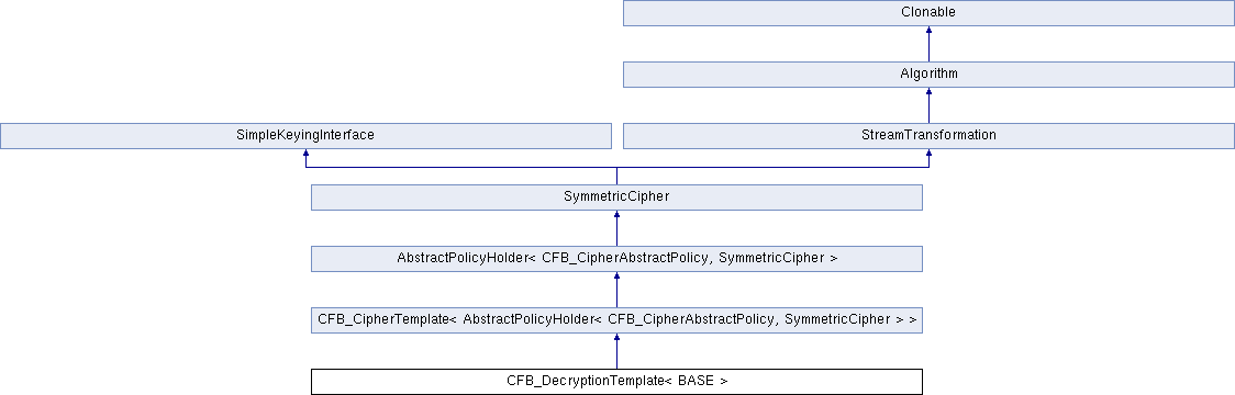 Inheritance diagram for CFB_DecryptionTemplate< BASE >:Additional Inherited Members | |