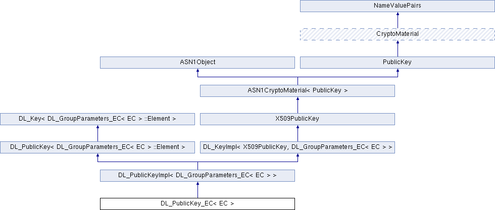 Inheritance diagram for DL_PublicKey_EC< EC >:Public Types | |