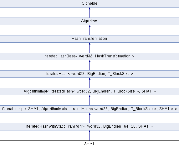 Inheritance diagram for SHA1:Public Member Functions | |