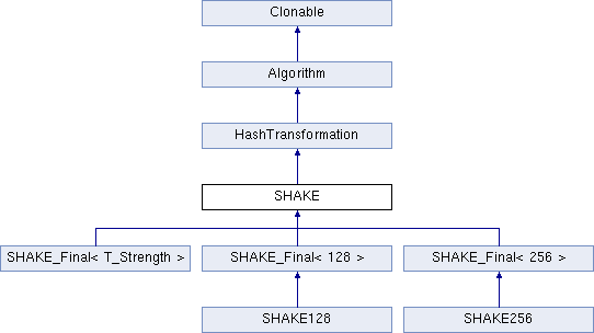 SHAKE is the base class for SHAKE128 and SHAKE258. Library users should instantiate a derived class, and only use SHAKE as a base class reference or pointer.