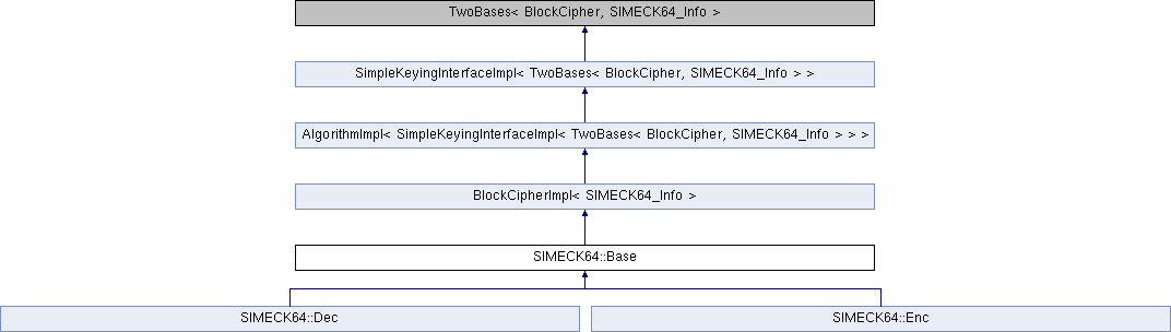 Inheritance diagram for SIMECK64::Base:Additional Inherited Members | |